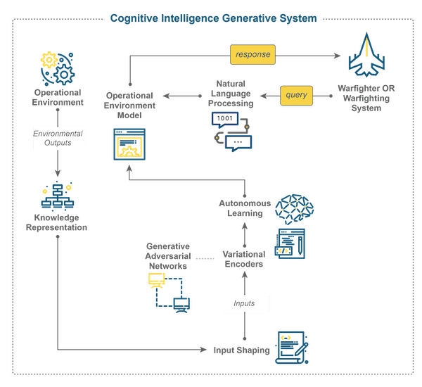 Recently, the DoD announced the establishment of a task force that is specifically designed to develop military applications for generative artificial intelligence (GI), one of many important AI concepts that have recently generated increased interest. This task force, known as Task Force Lima, is designed to advance the capabilities of both the human and robotic warfighter in the All-Domain Operational Environment (OE). Sentient Digital stays at the forefront of emerging technologies, such as cognitive intelligence and machine learning, by developing tools that increase the capabilities of our warfighters on both land and sea, including the many useful military applications of artificial intelligence. In the same vein, Sentient Digital has begun a new area of research and development combining cognitive intelligence and generative AI. This article will explain the basics of cognitive intelligence and generative AI, as well as the exciting potential of combining them.