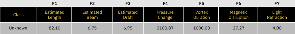 | Class | Estimated Length | Estimated Beam | Estimated Draft | Pressure Change | Vortex Duration | Magnetic Disruption | Light Refraction |